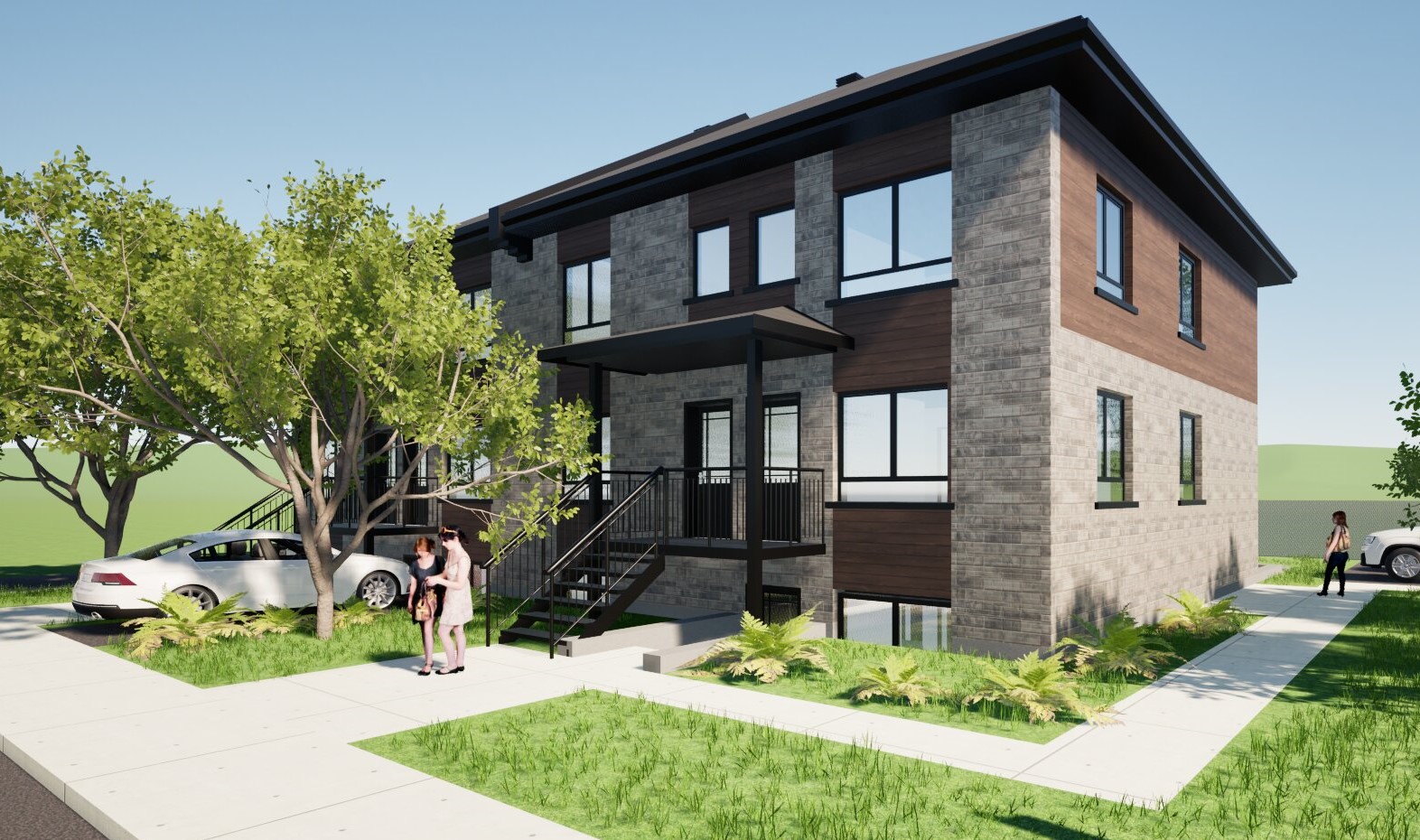 Projet de 4 immeubles à revenus situé en plein cœur de La Prairie. Les logements sont réparties de la façon suivantes: 2 immeubles de 24 logements et 2 immeubles de 28 logements.
